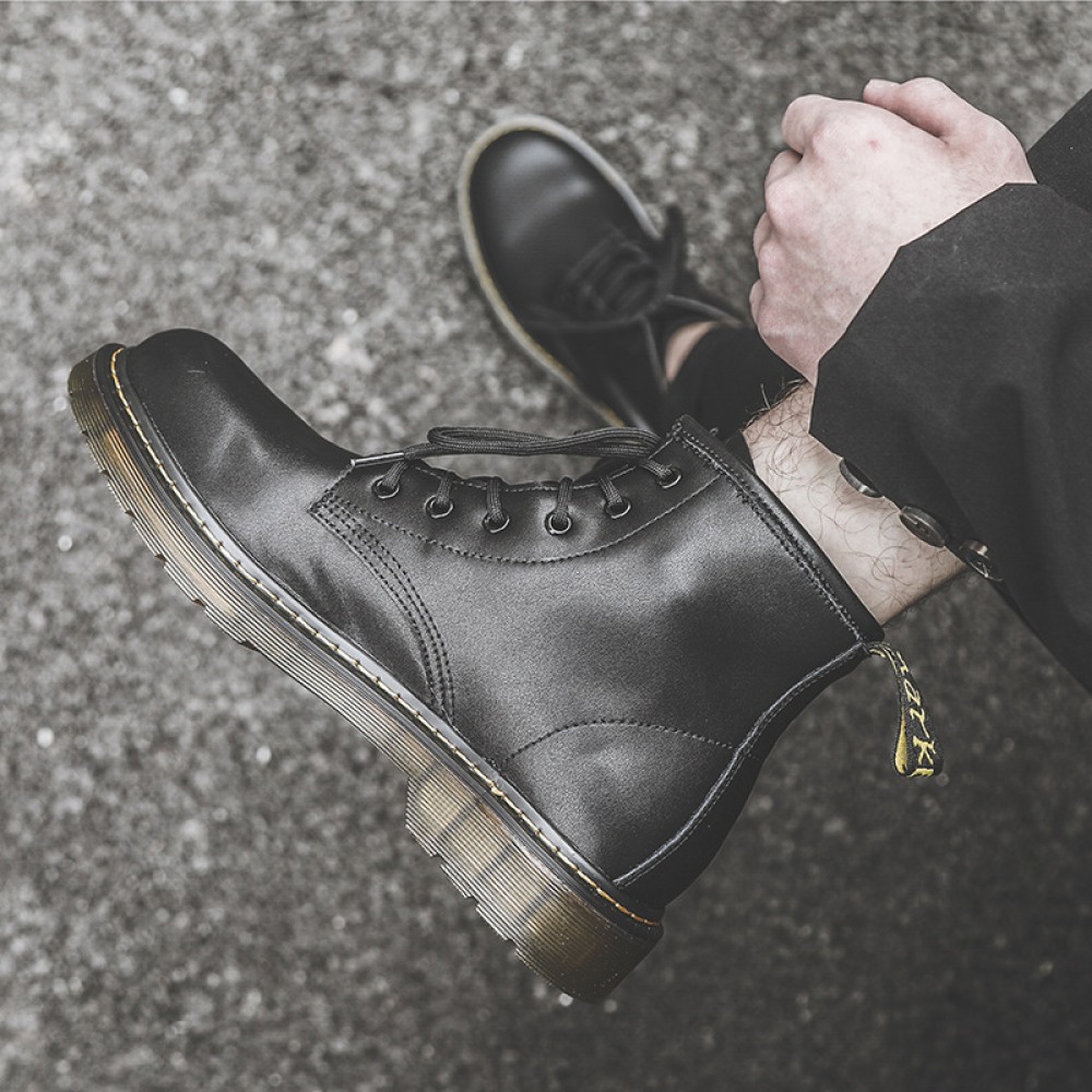 Autumn New Martin Boots Men's High-Top Short Boots Trendy Leather Mens Mid-Top Boots