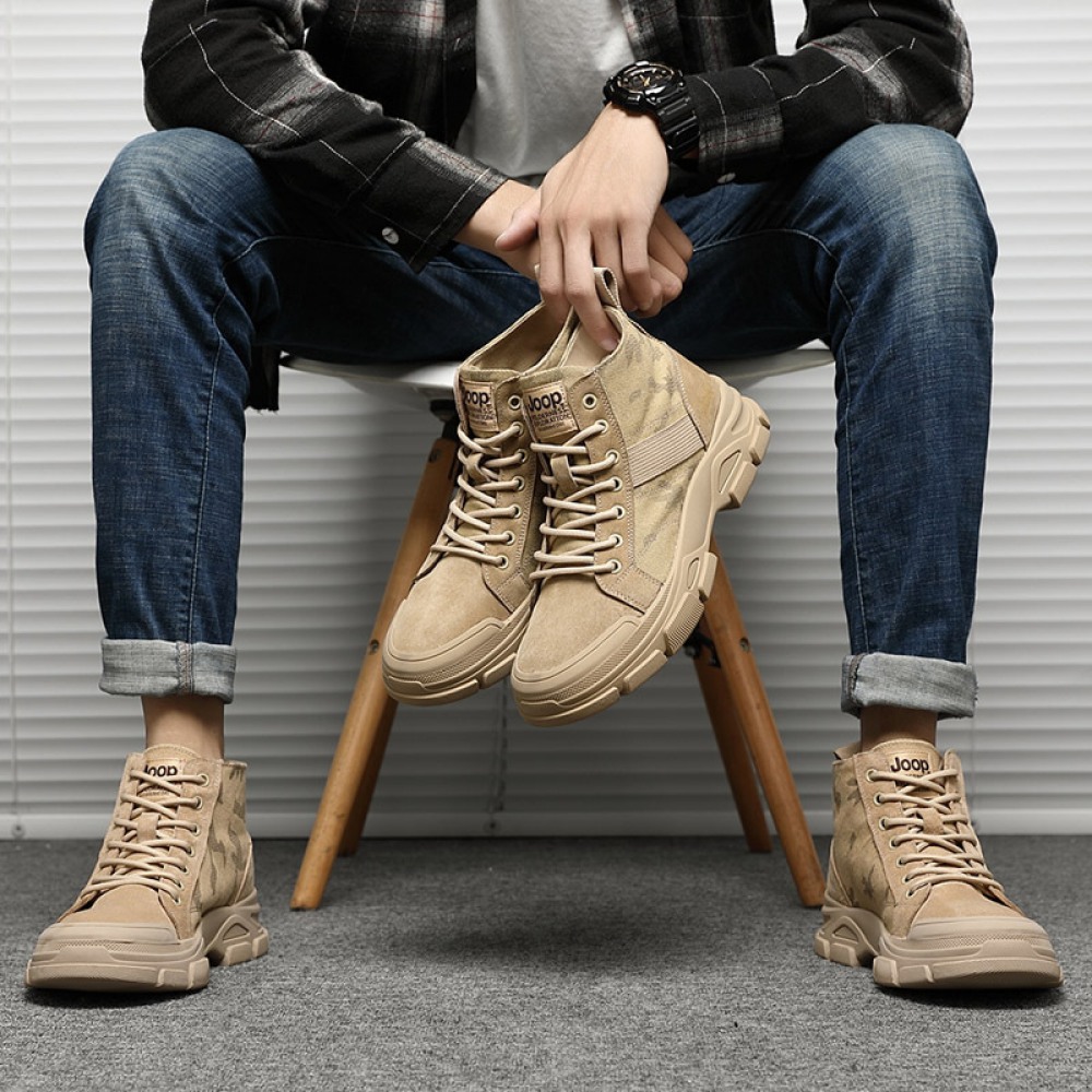 Men's High Top Shoes Leather Casual Martin Boots Leather Shoes Autumn Trendy Shoe