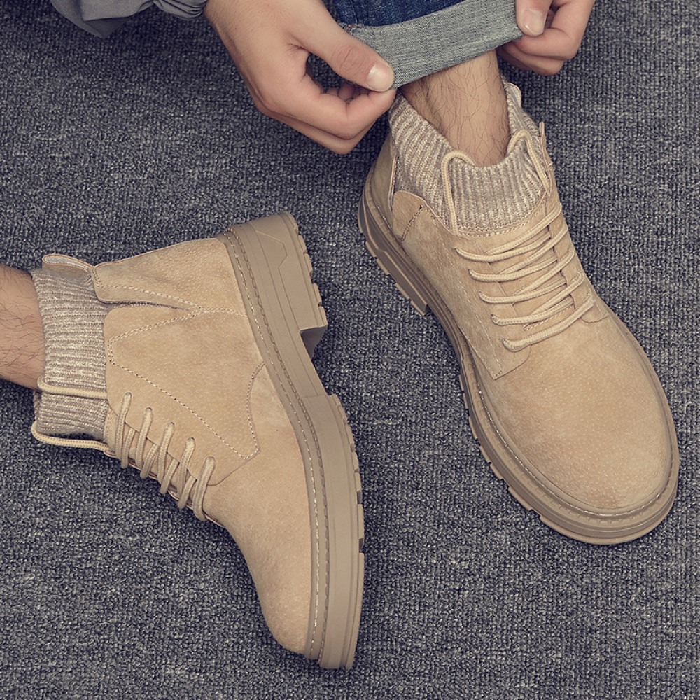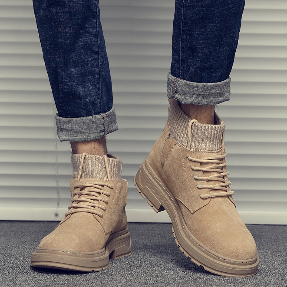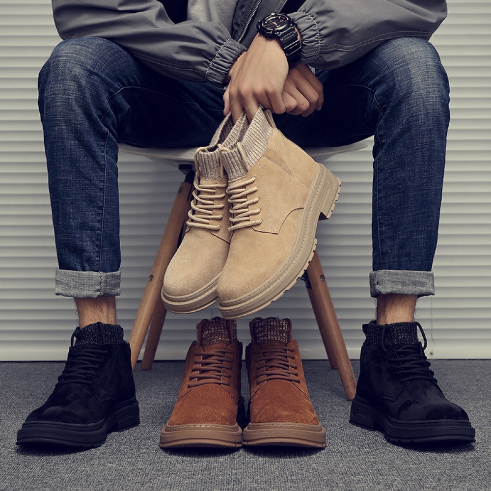 Autumn New Martin Boots Men's High-Top Short Boots Trendy Leather Mens Mid-Top Boots