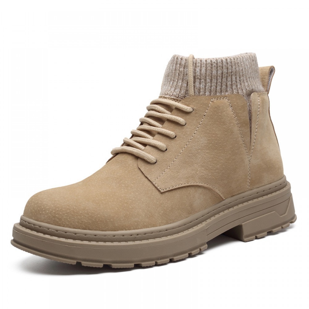 Men's Round Toe British Mens Leather Boots Side Zipper Martin Boots Wear-Resistant Low-Heel Shoes