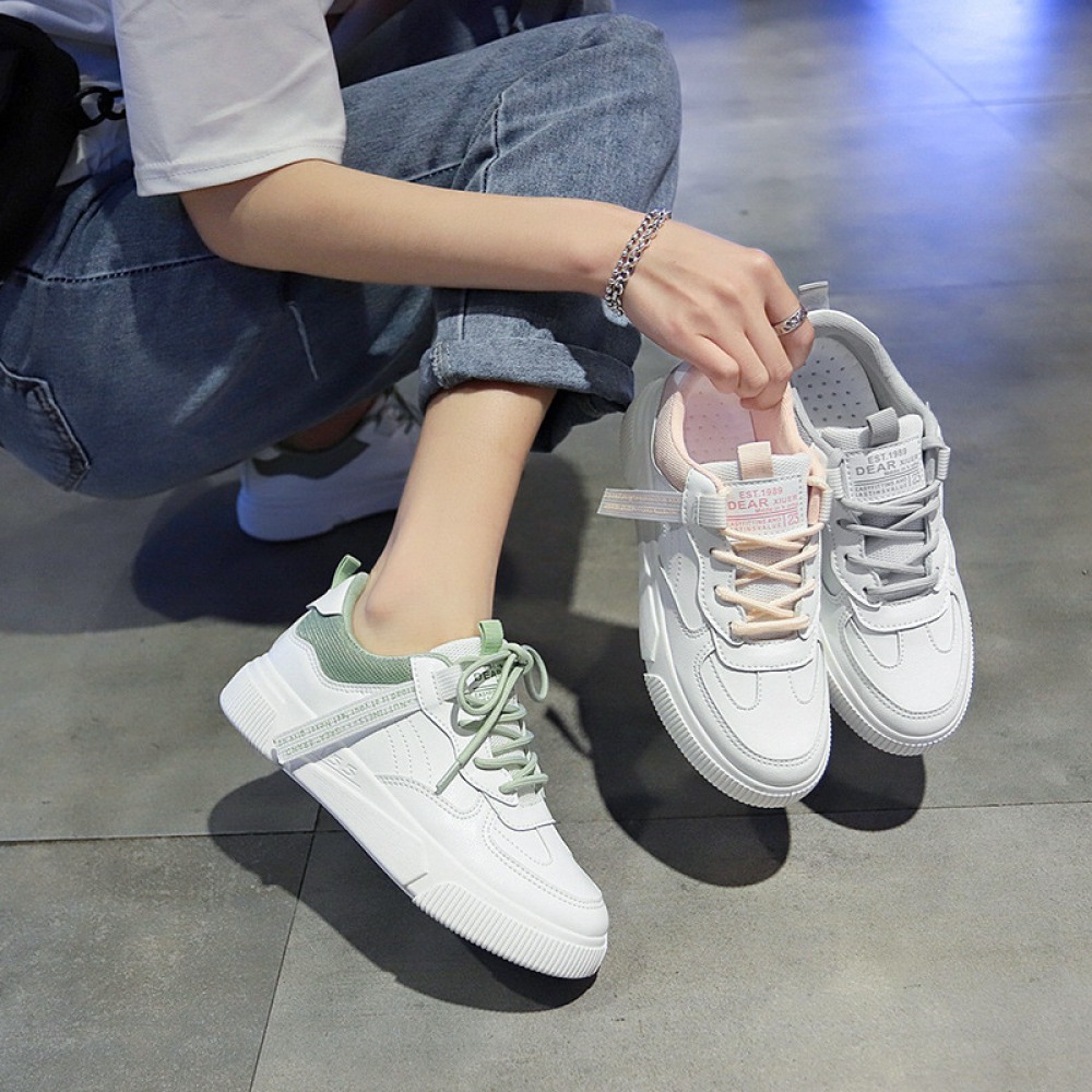 White Shoes Female Spring New Breathable Student Running Board Shoes Female Flat Lace-Up Shoes