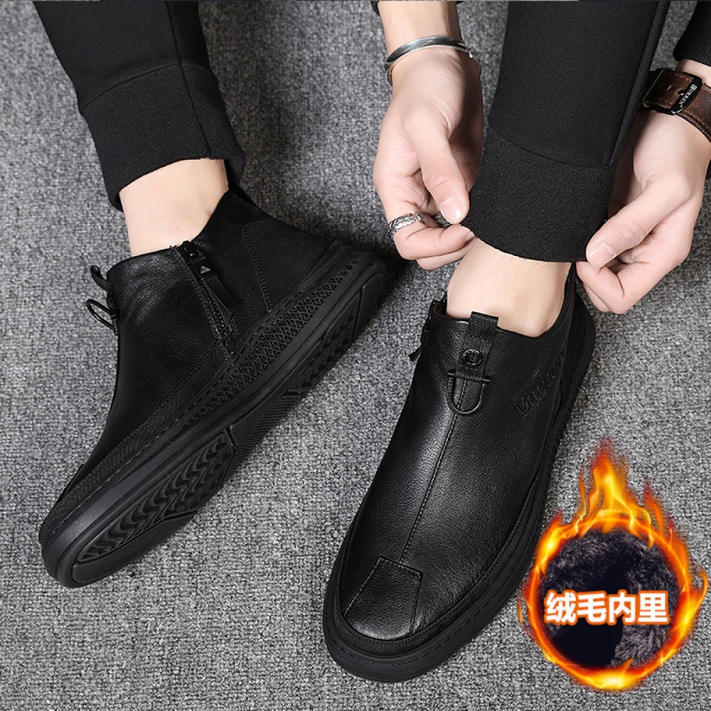 Men's Cotton Shoes Plus Velvet Warm Mens Leather Shoes