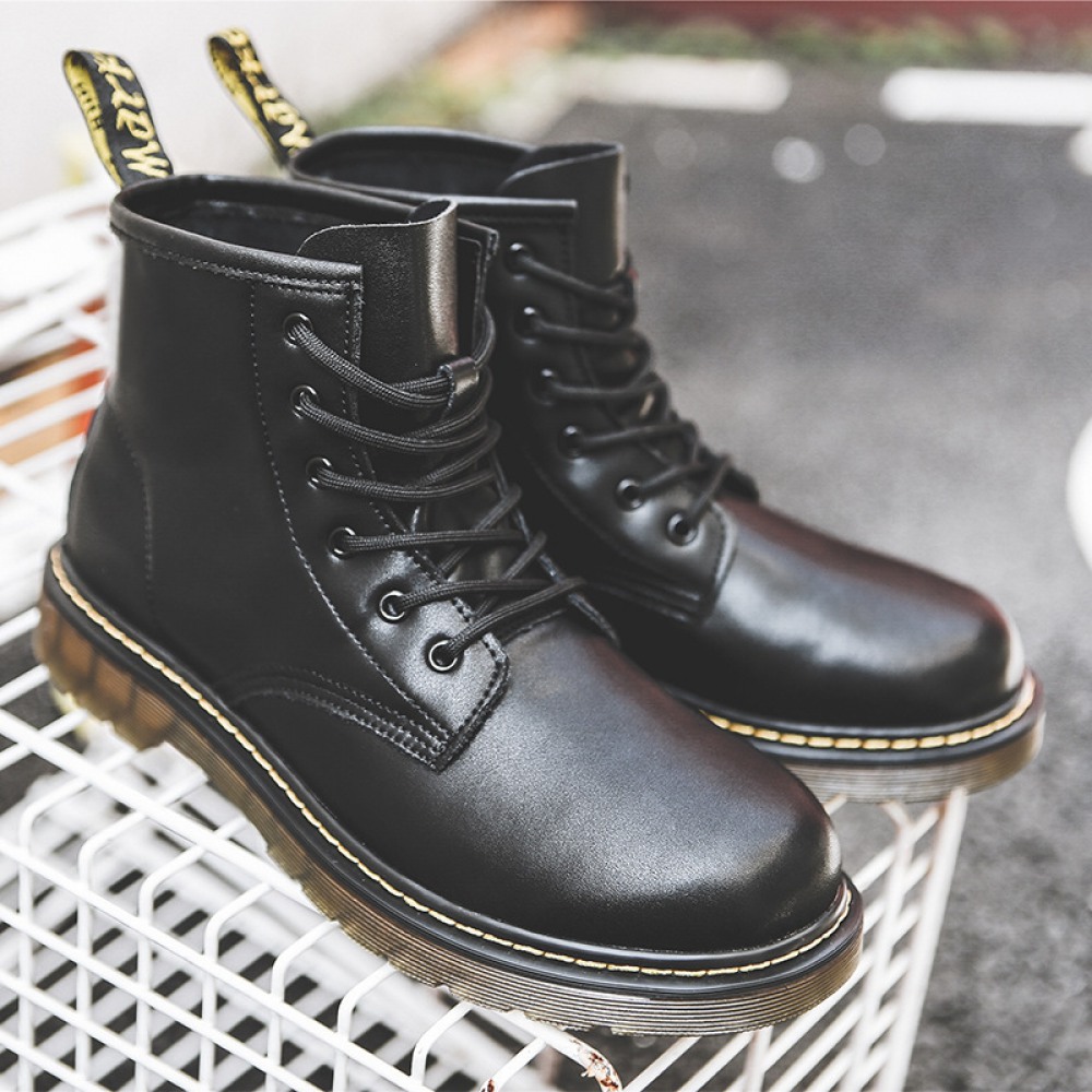 Autumn New Martin Boots Men's High-Top Short Boots Trendy Leather Mens Mid-Top Boots