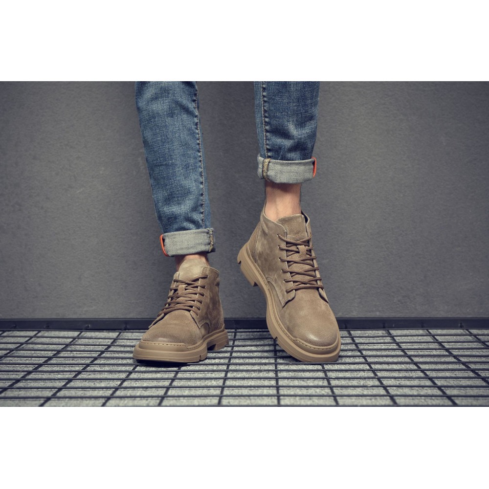 Autumn New Martin Boots Men's High-Top Short Boots Trendy Leather Mens Mid-Top Boots