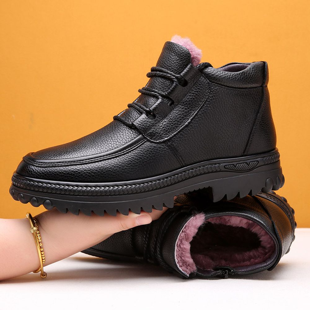 Men's Cotton Shoes High-Top Wool Warm Boots Leather Plus Suede Shoes