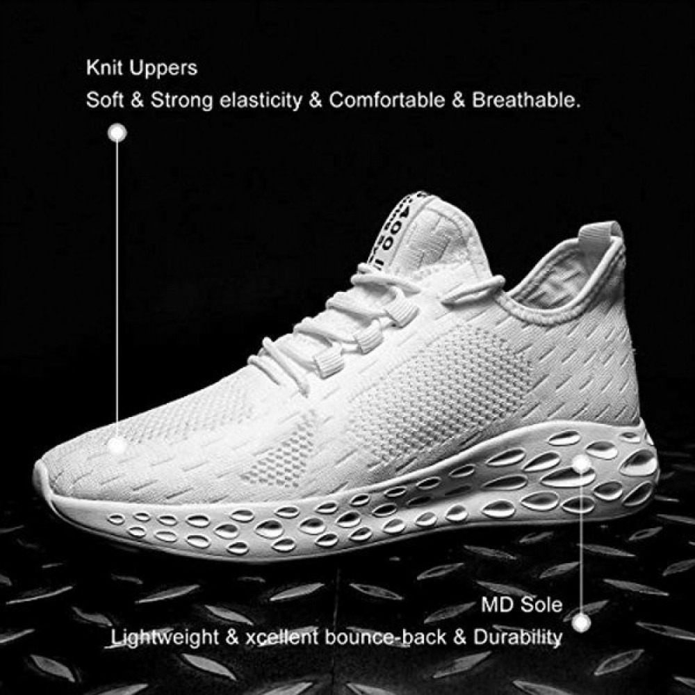Men's Non Slip Gym Sneakers Lightweight Breathable Athletic Running Walking Tennis Shoes Black-White