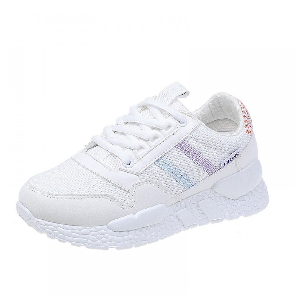 White Shoes Female Spring New Breathable Student Running Board Shoes Female Flat Lace-Up Shoes