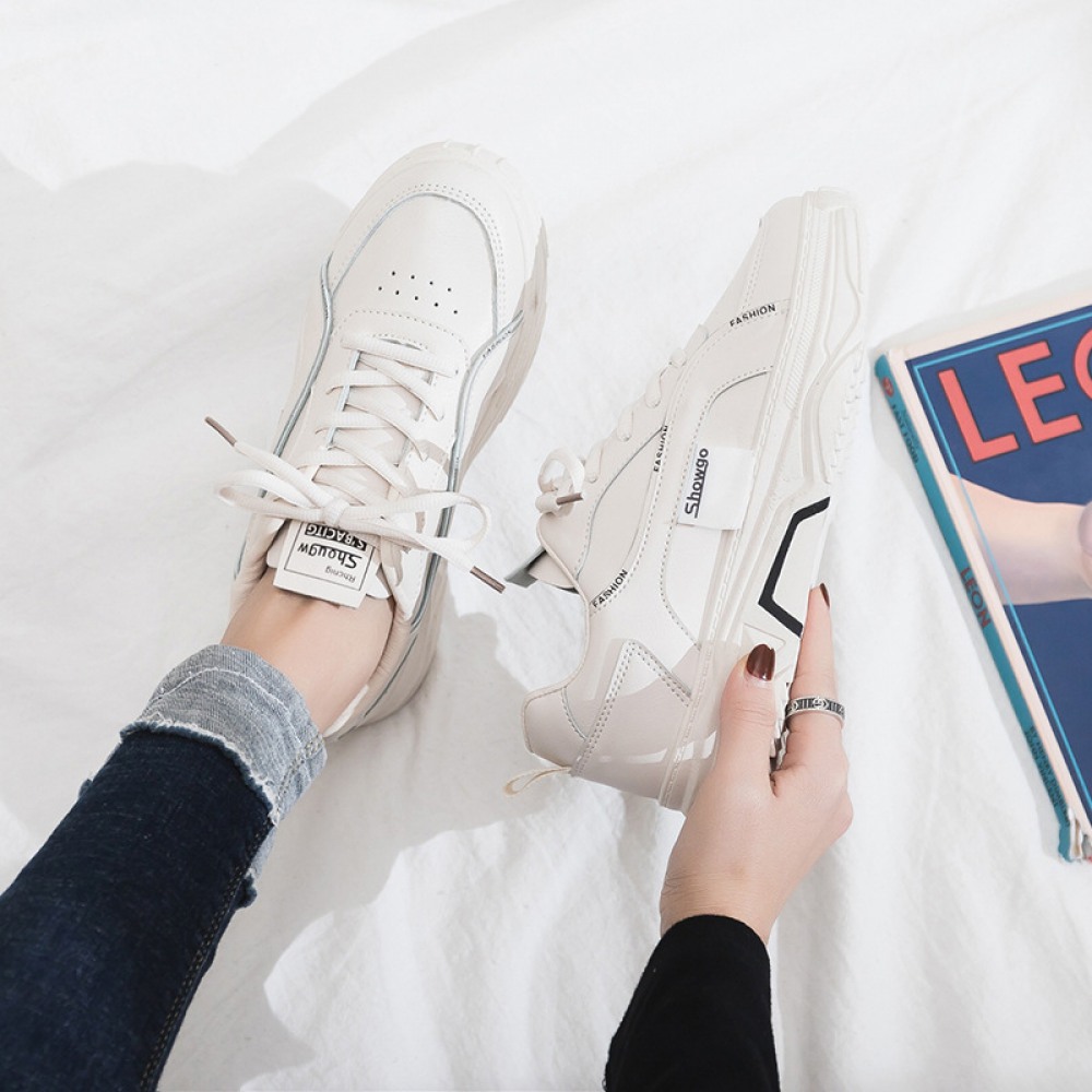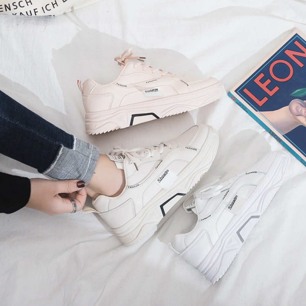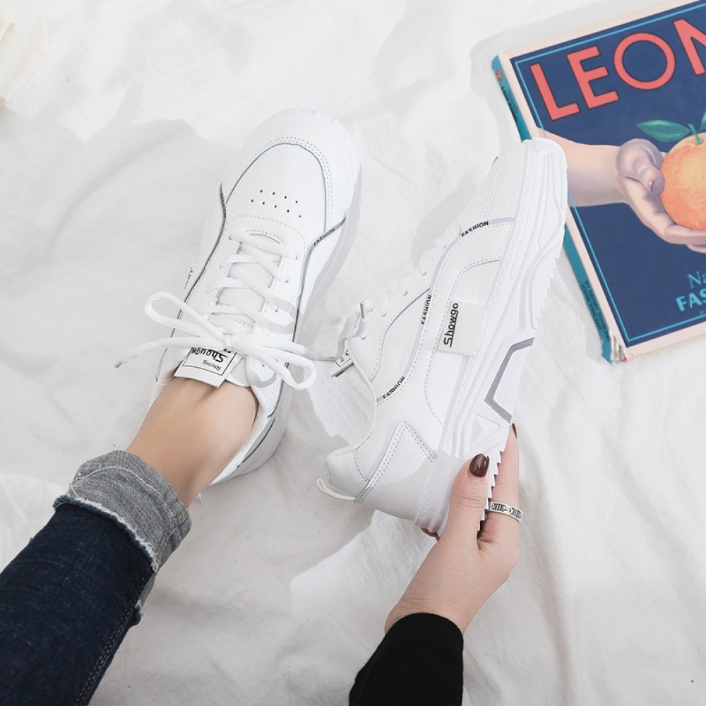 White Shoes Female Spring New Student Running Board Shoes Female Increased Sports Casual Shoes Laces